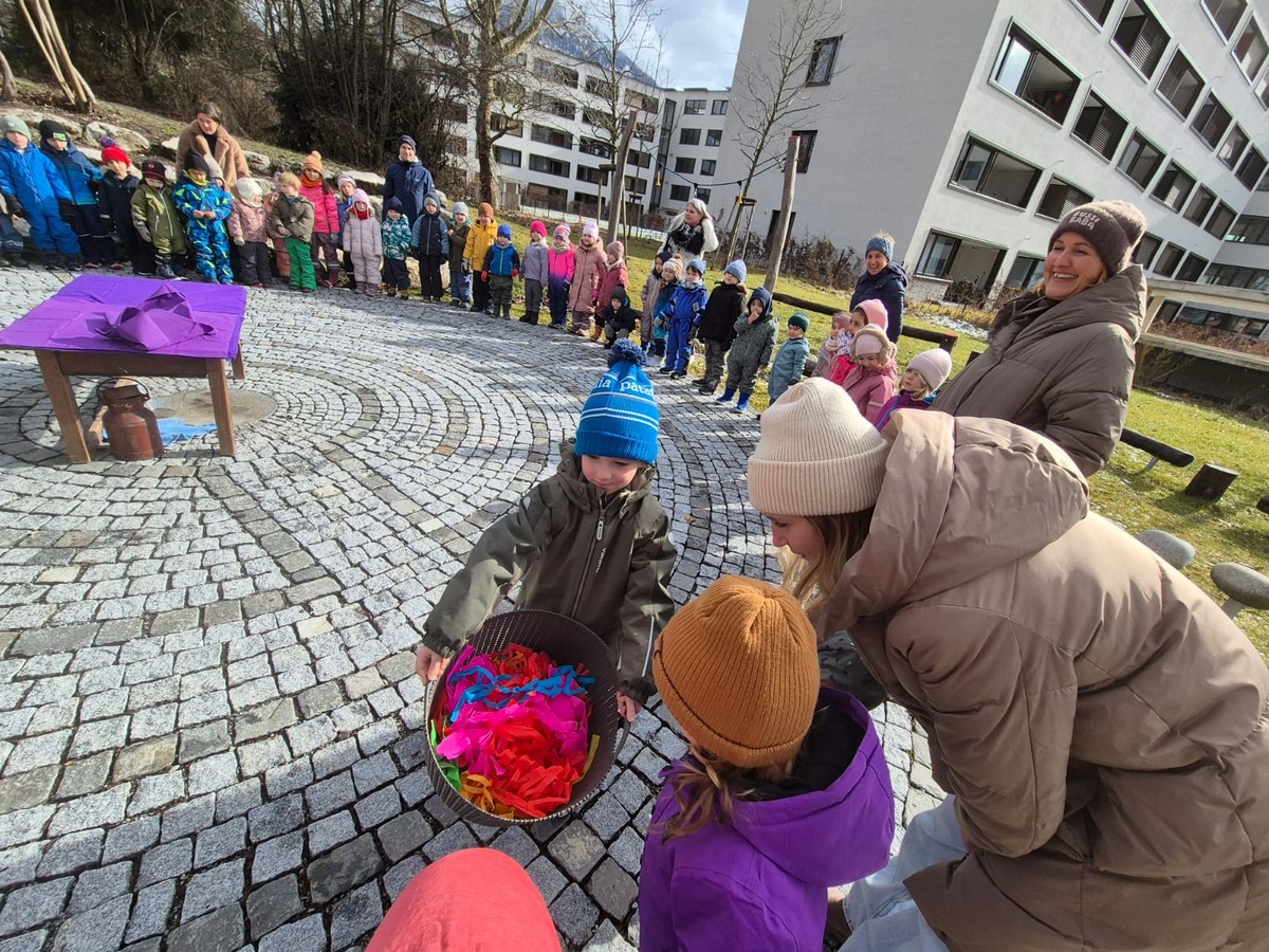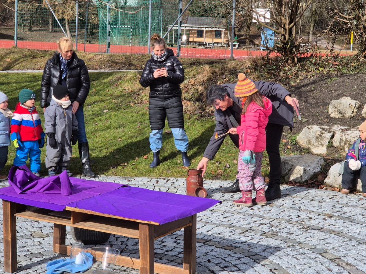 Nach der ausgelassenen Faschingszeit stimmen wir uns am Aschermittwoch gemeinsam auf eine ruhigere Zeit im religiösen Jahreslauf ein. Im Steinkreis bei uns im Garten erleben wir wie bunte Faschingsgirlanden im Feuer zu Asche verbrennen. Diese Asche gilt als Symbol von Vergänglichkeit, steht aber gleichzeitig auch für den Neuanfang. Die Fastenzeit soll helfen uns auf das Wesentliche zu besinnen, sich persönlich vielleicht auch im Verzicht zu üben und uns auf das Osterfest vorzubereiten.